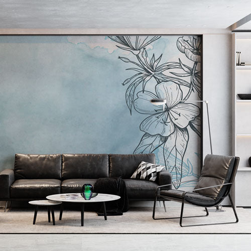 Fototapete - Floral pastelno plava